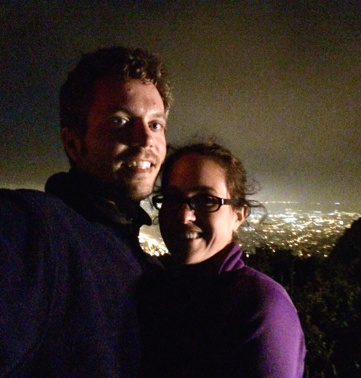 Even though it was nice in the city, it was overcast, windy and cold on top of the hill. Stacy didn't want to be outside of the car so Mike proposed in the car. The picture shown was taken halfway back down the hill, where the weather was nicer.